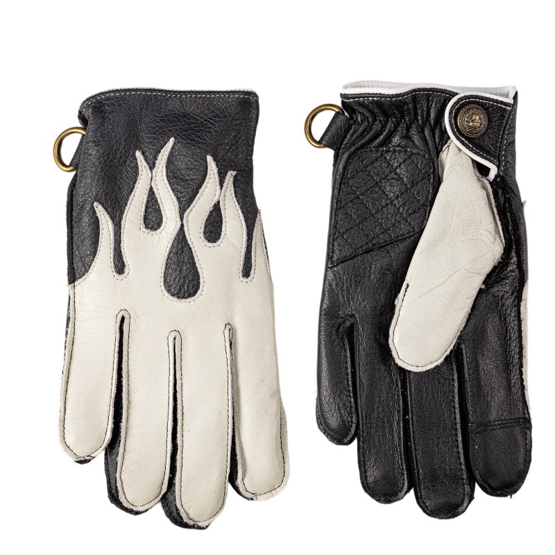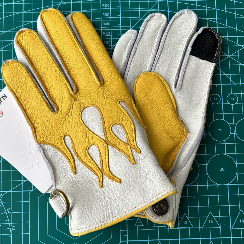 鹿皮新款火焰驾驶机车复古运动情侣真皮手套男女触屏保暖白色手套