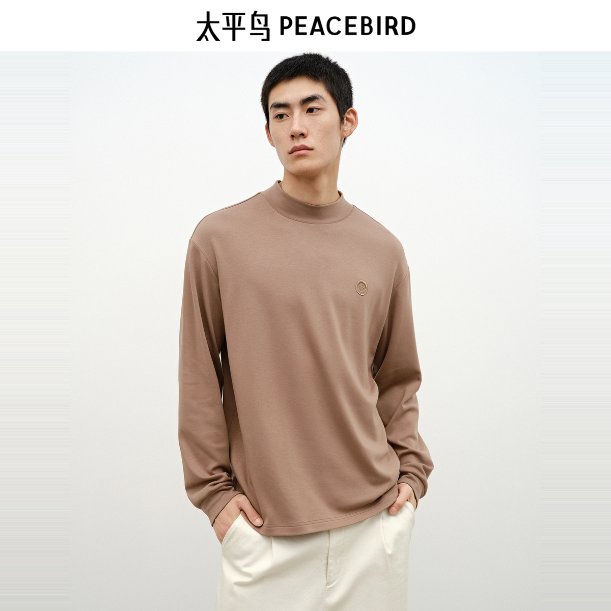 【慵懒打底衫】太平鸟男装奥莱纯色长袖T恤冬半高领内搭