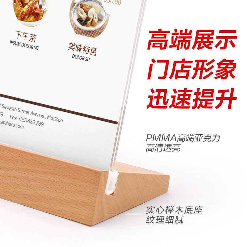 a4展示牌亚克力桌面立牌台签价目表桌面会员充值台卡餐桌菜单立式广告牌展示架a5磁吸榉木台签产品介绍展示牌