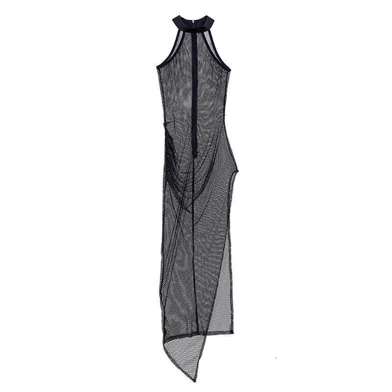 性感透视夜总会透纱晚礼服透明网纱长裙夜场女装ktv佳丽连衣裙