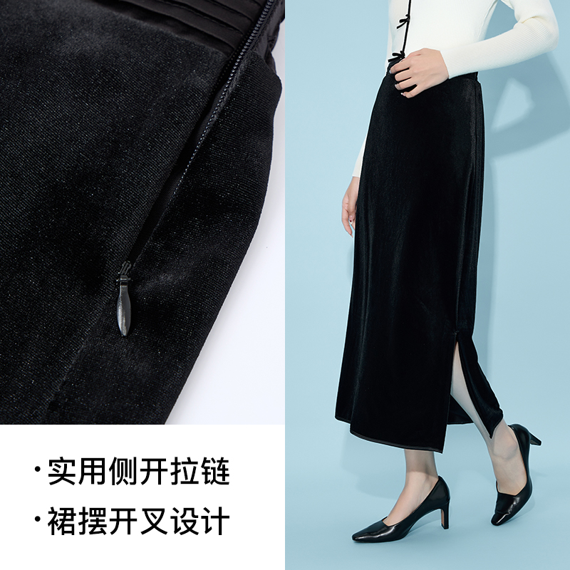 马天奴商场同款2025春新款丝绒半身裙官方正品女装半截中长裙子