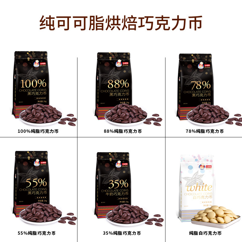 古缇思烘培1KG可可脂黑巧克力币豆超大块原料散装冰淇淋脆皮DIY