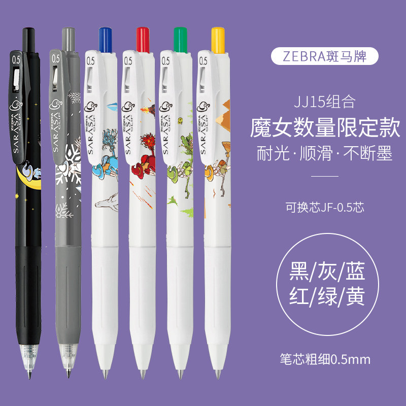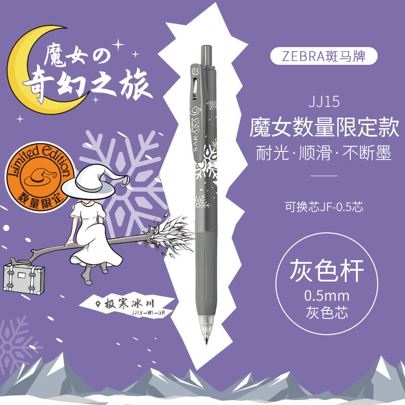 极寒冰川灰色 日本zebra斑马中性笔JJ15魔女限定高颜值女巫学生进口文具按动水笔黑色刷题笔做笔记sarasa彩色