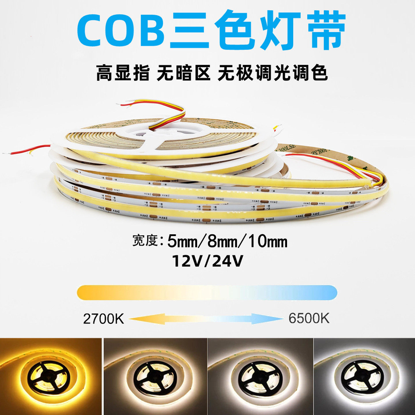 智能三色COB灯带调光调色线形灯