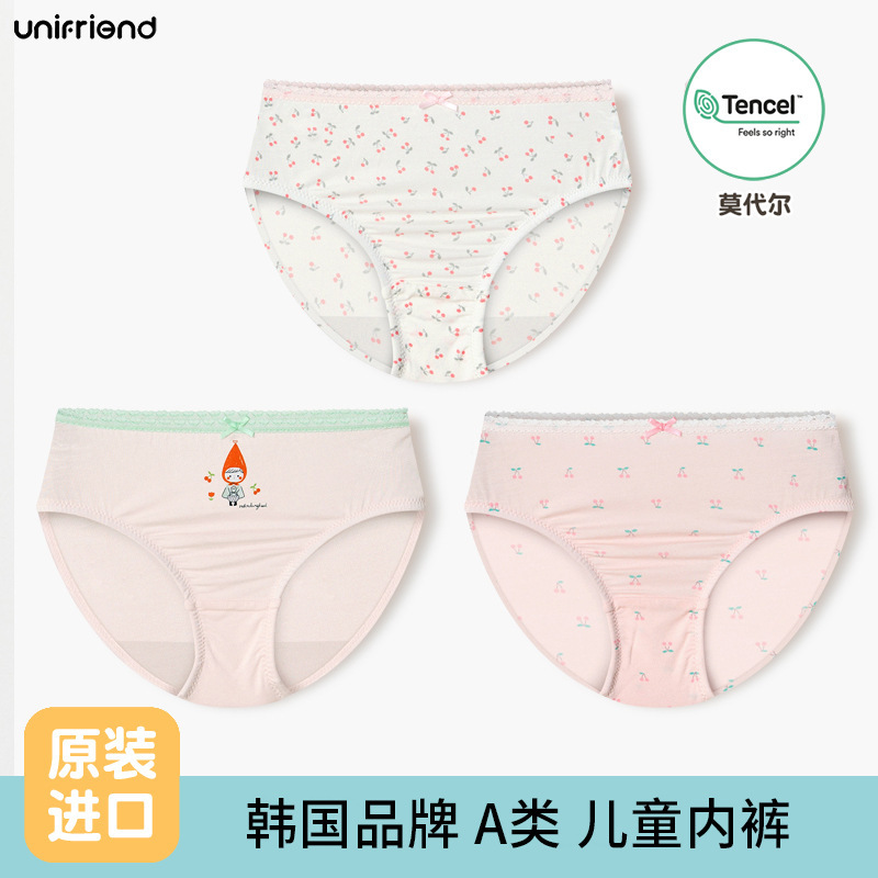 unifriend儿童内裤女童夏季薄款短裤莫代尔男童宝宝中大童三角裤