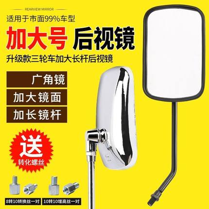 适用宗申三轮车后视镜摩托车反光镜农用车倒车镜10mm加长杆后视镜