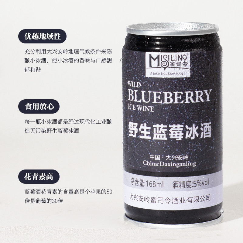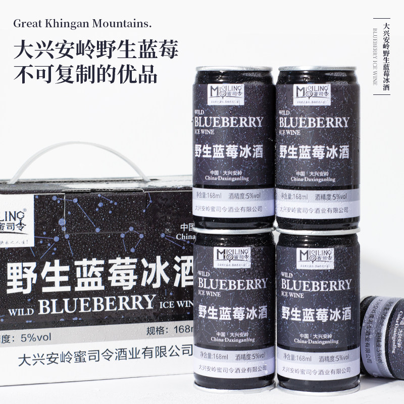 大兴安岭野生蓝莓冰酒发酵水果酒女士低度甜酒微醺晚安小酒礼盒装