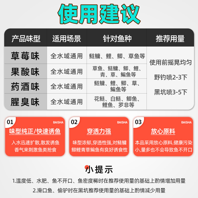 白鲨鲢鳙开口剂野钓黑坑钓鱼小药草莓味花白鲢饵料果酸诱食促食剂