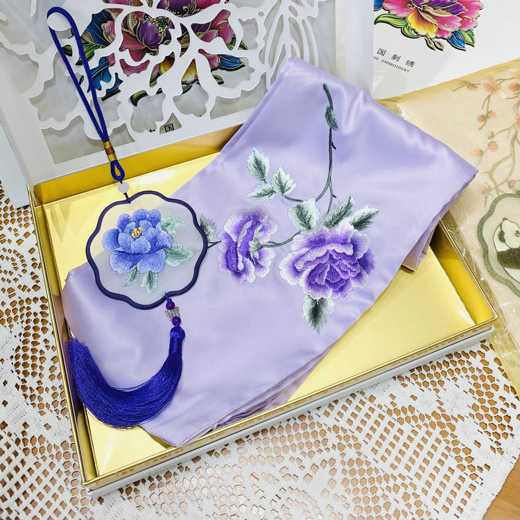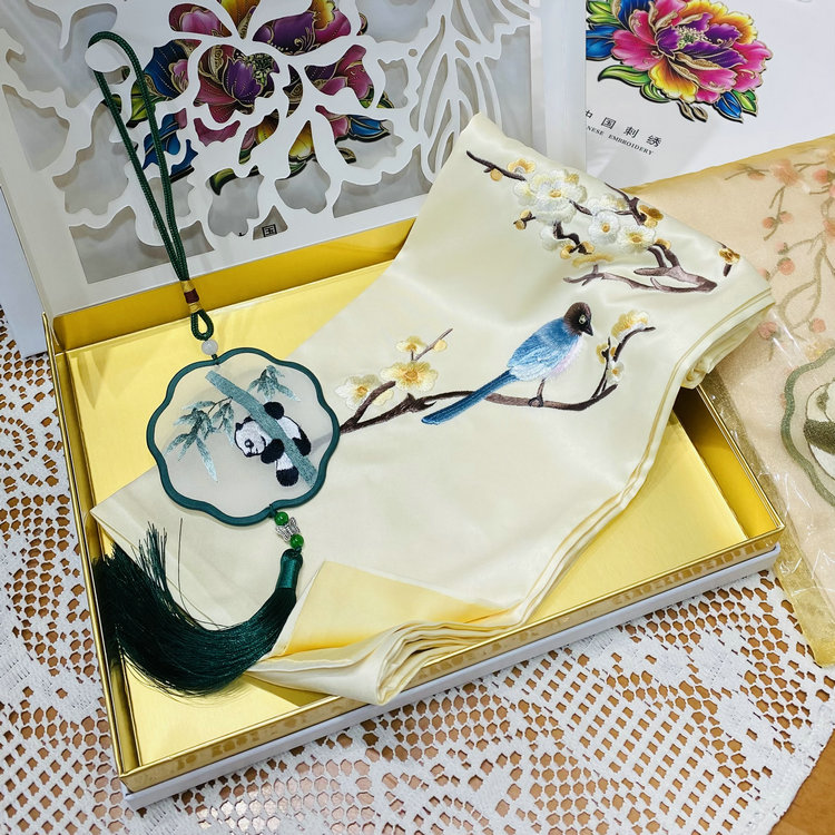 苏绣双面绣车挂件刺绣绣花真丝丝巾桑蚕丝女围巾出国商务伴手礼