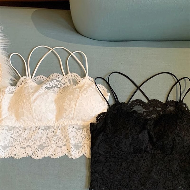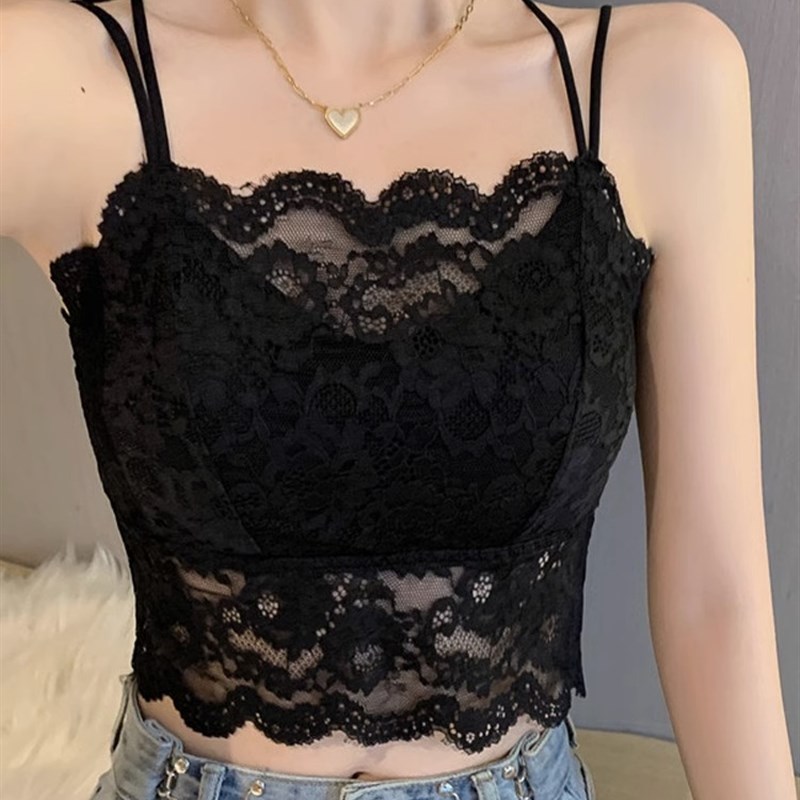 外穿蕾丝美背吊带小背心女夏新款性感内搭带胸垫文胸打底一体内衣