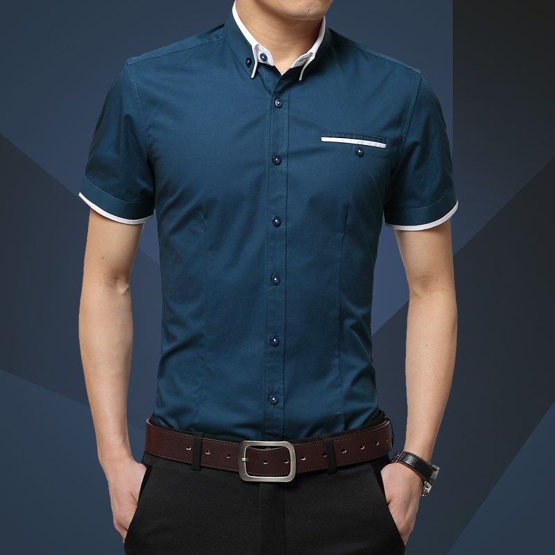 2024新款短袖衬衫男士夏季青年结婚修身休闲衬衣红色免烫新郎装