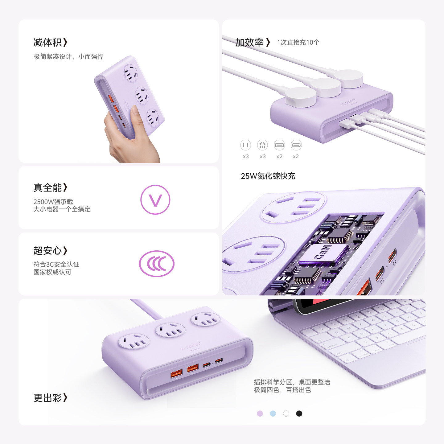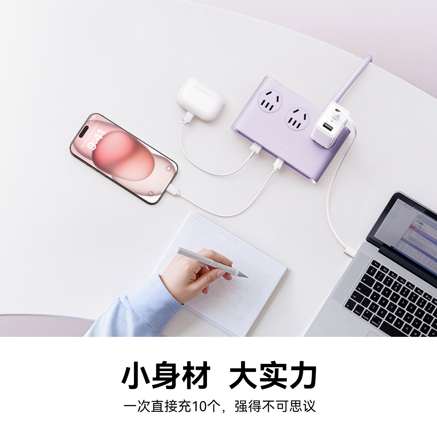 奥睿科十合一桌面充电站快充插座自带线大容量移动电源