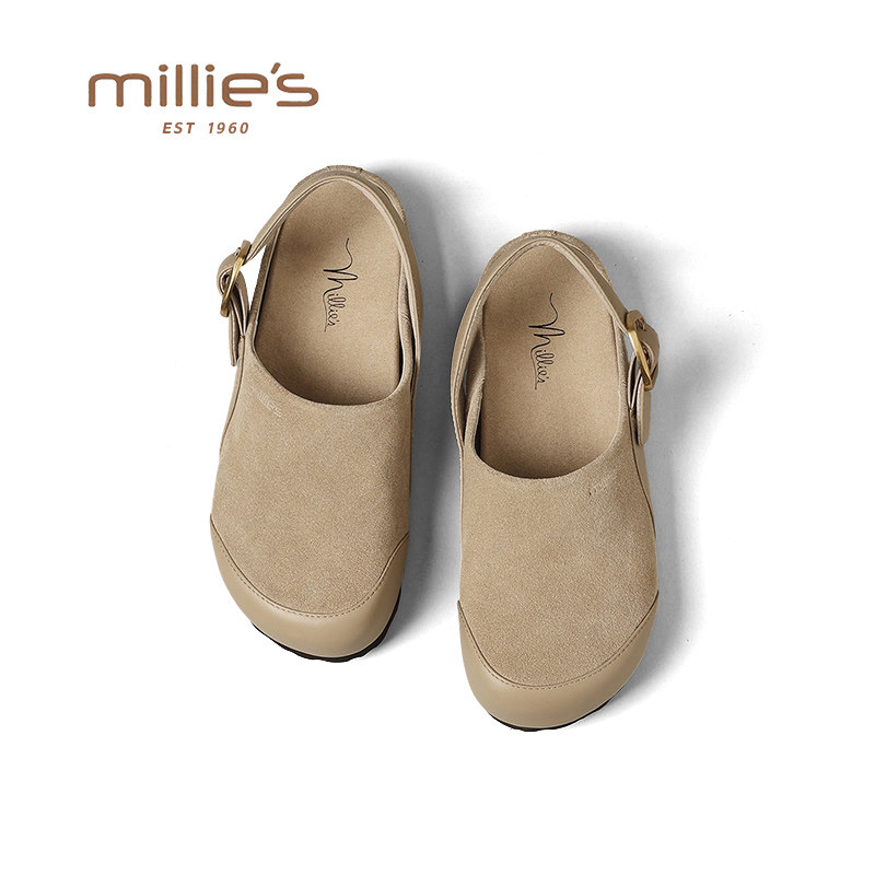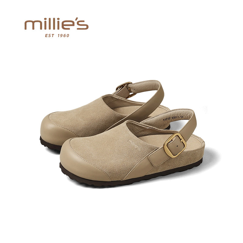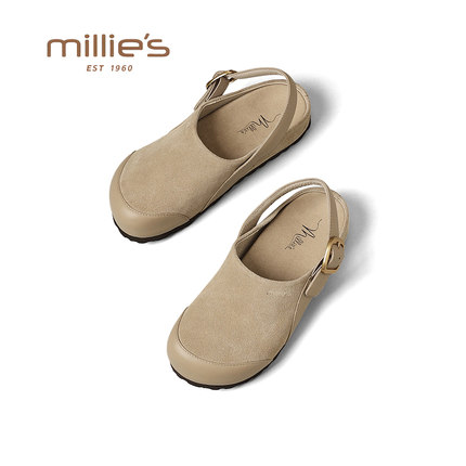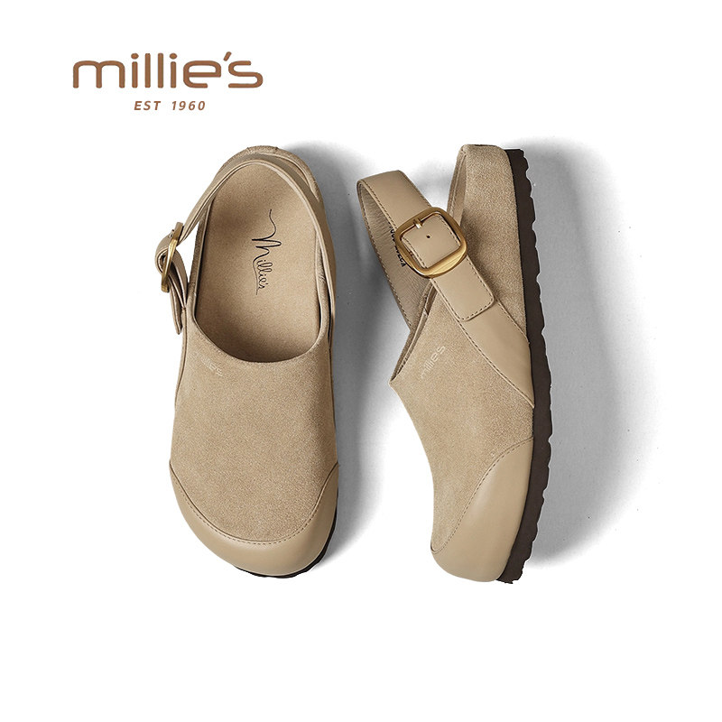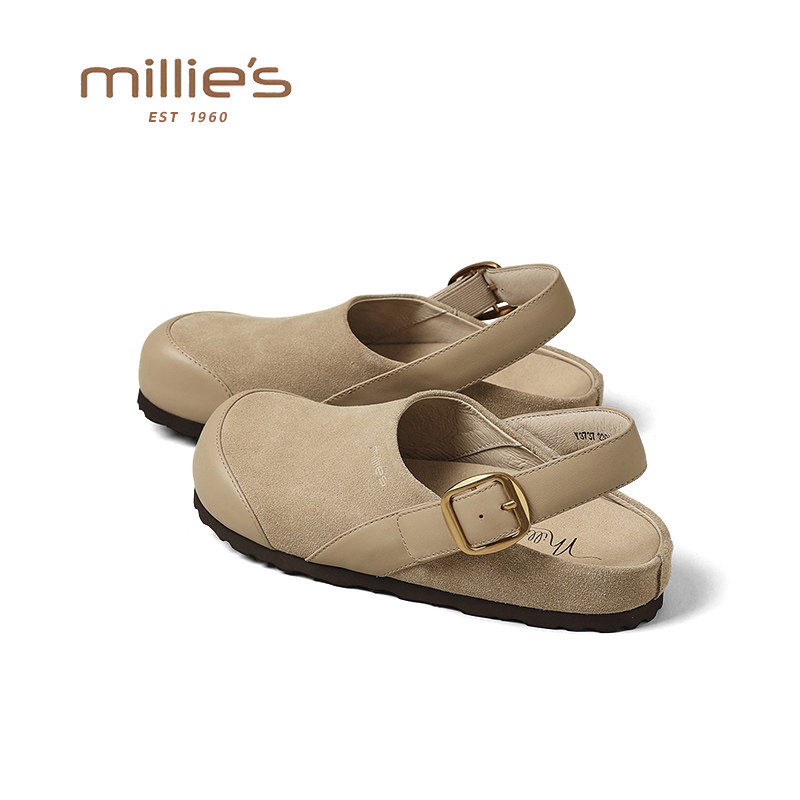 妙丽真皮半包一脚蹬软底勃肯鞋女2026春季新款通勤轻便不累脚单鞋