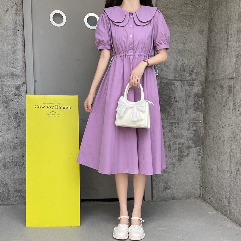 初中高中学生青春少女连衣裙夏宽松显瘦收腰学院风日系气质长裙子