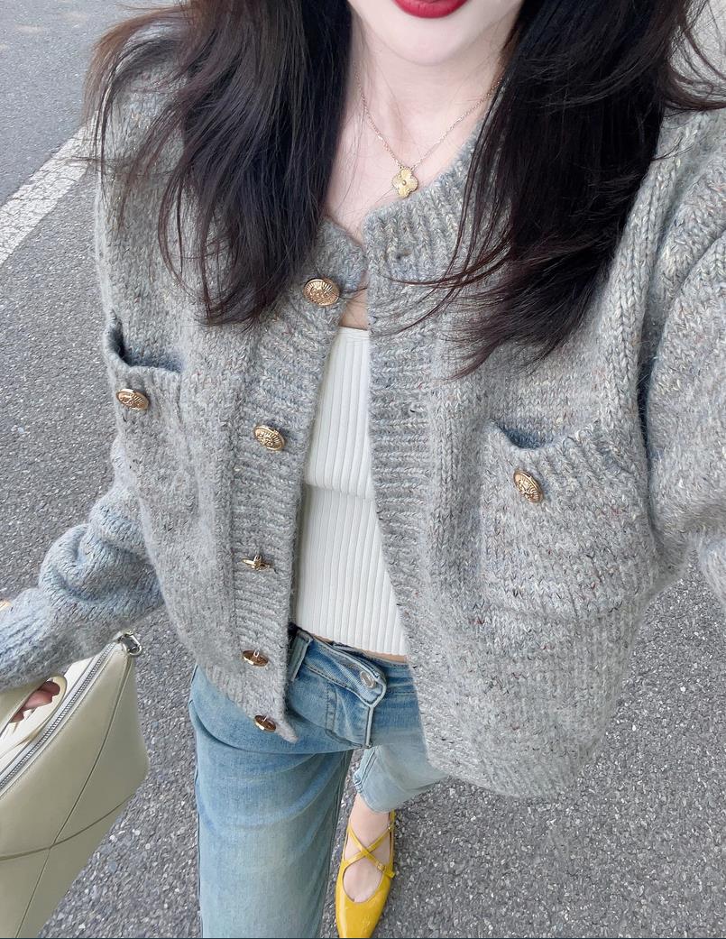 MXRJ秋季2023新款小香风针织外套女毛衣慵懒风高级感软糯气质上衣