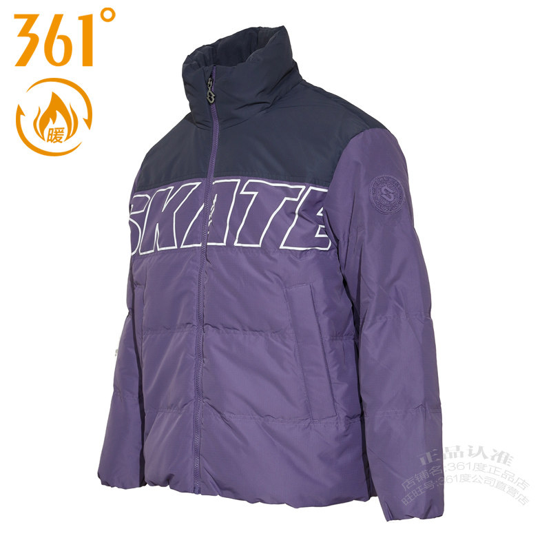 361度男装运动羽绒服2024冬季新款361立领加厚保暖外套字母9303N