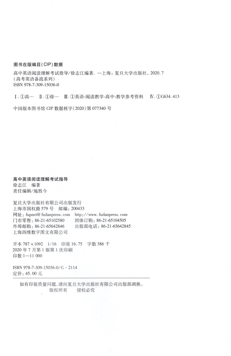 高中英语阅读理解考试指导 阅读篇 125篇精选语篇 复旦大学出版社 高三高考英语阅读理解专项训练 高一高二高三学生适用 中学教辅