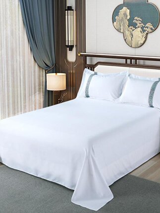 宾馆酒店床上用品四件套民宿三件套单双人贴布绣纯白床单被套组i.