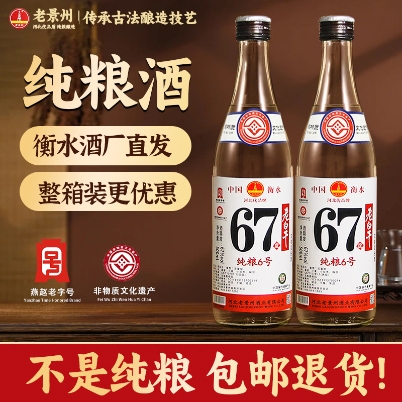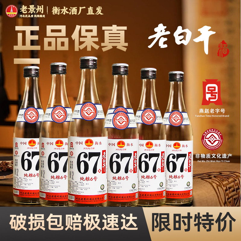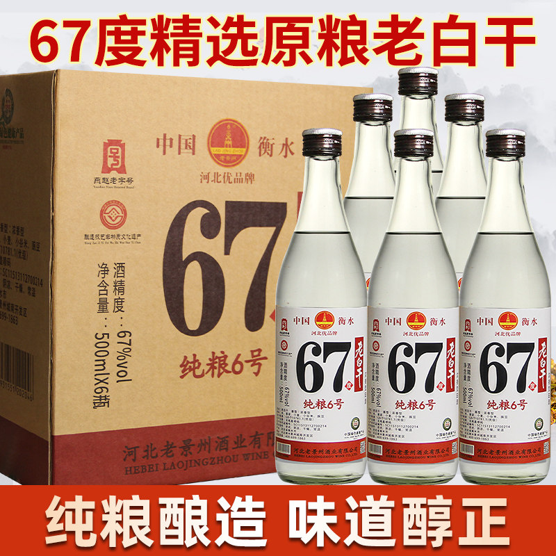 河北老白干67度整箱6瓶装高度纯粮食白酒固态浓香型 衡水高粱酒水