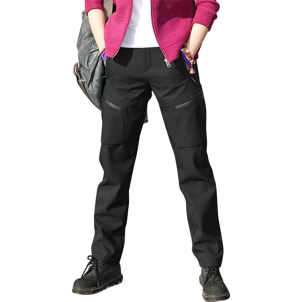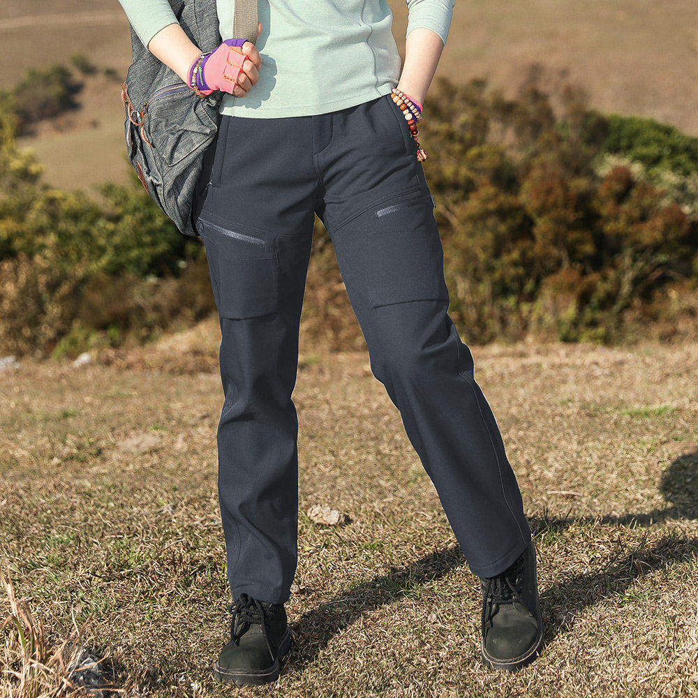 凯乐石薄荷户外加厚直筒多袋软壳裤女长裤摇粒绒冲锋裤女透气防风
