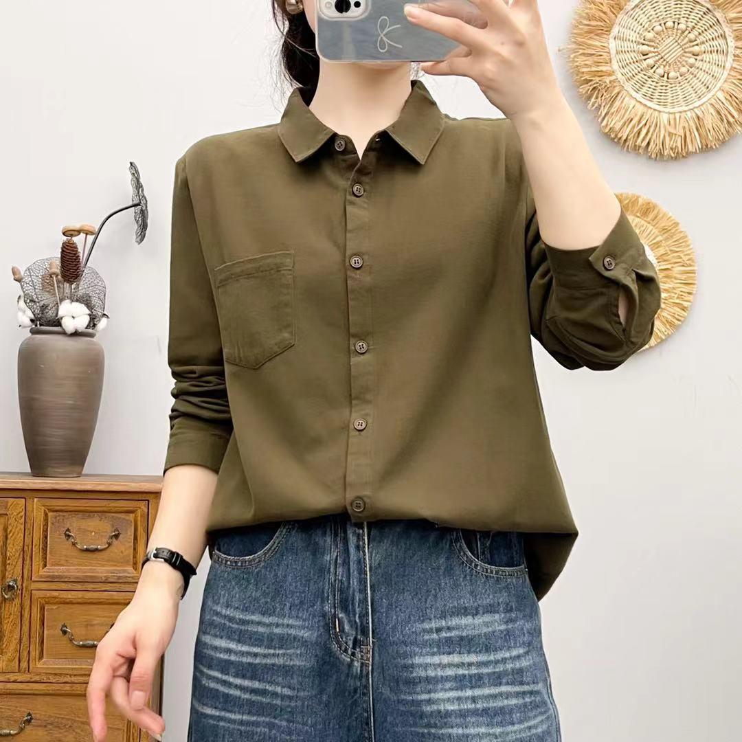秋冬新款加厚磨毛打底衬衫柔软休闲百搭长袖衬衣女156
