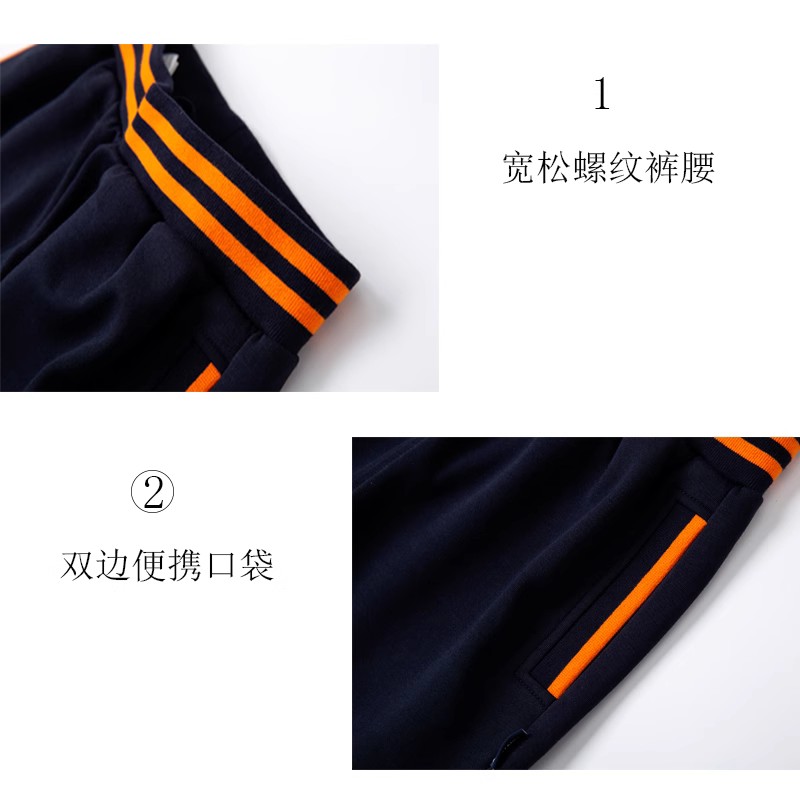 中小学生夏季春秋英伦风藏青橘色棒球服裤子男女生运动服裤子套装