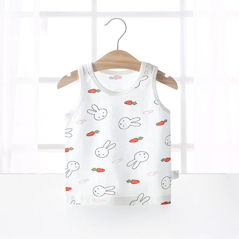 婴儿背心夏季纯棉无骨超薄宝宝女童网眼无袖透气儿童内衣打底护肚