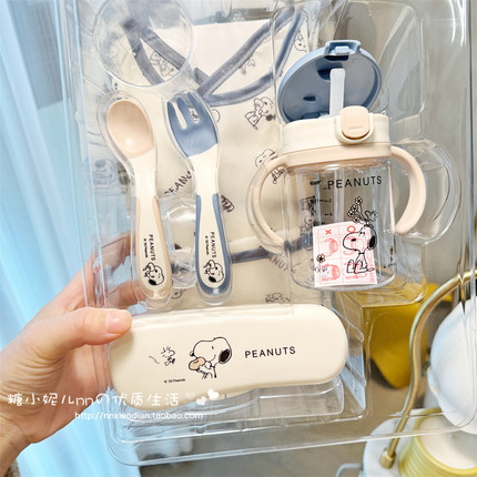超值日本Richell利其尔宝宝吸管杯学饮杯训练勺叉snoopy限定200ml