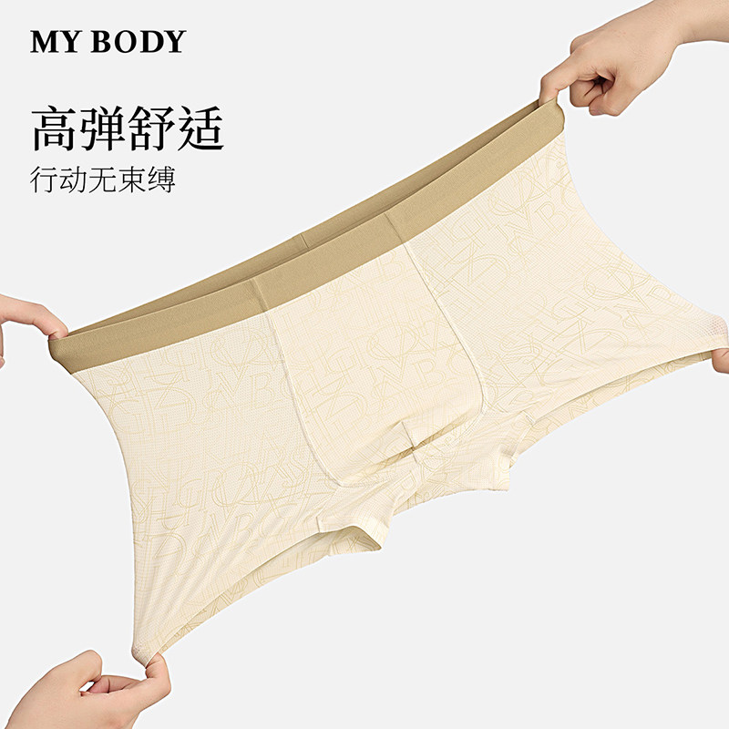 MYBODY商场同款男士内裤舒适柔软高弹字母印花平角裤男生四角短裤