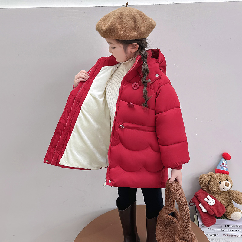 女童棉服冬季2025新款洋气加绒宝宝儿童连帽加厚冬装棉衣外套棉袄