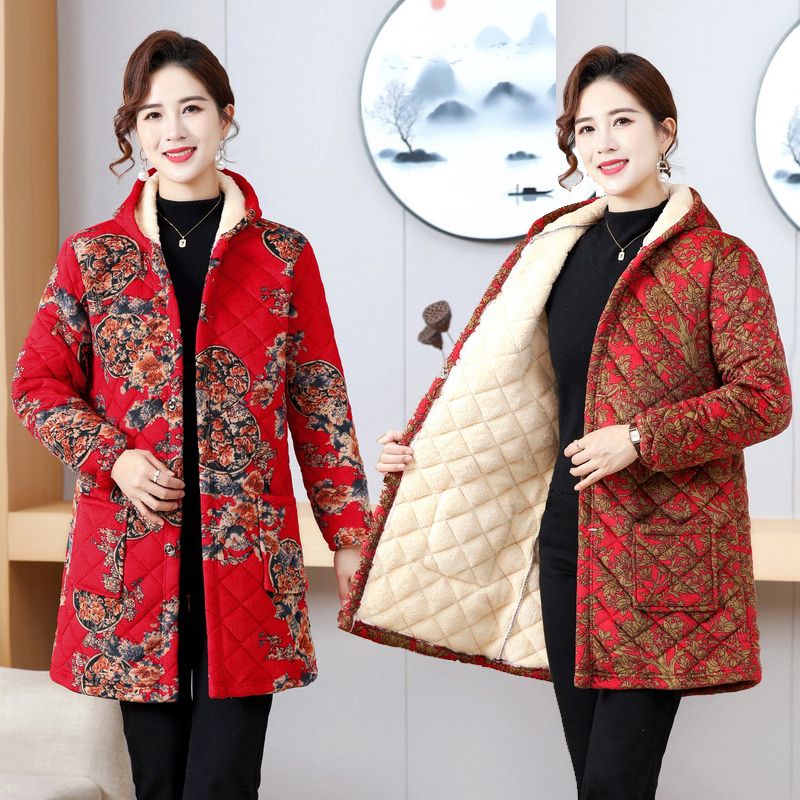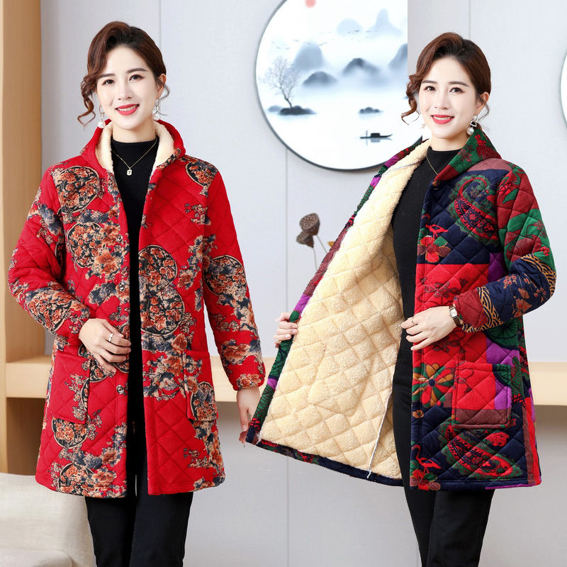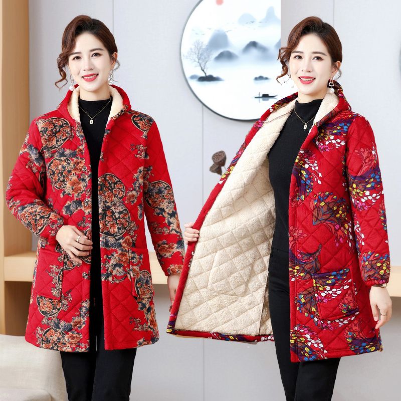 四川省服罩衣女中年女装春秋棉衣外套妈妈装中长款棉袄装棉服外穿