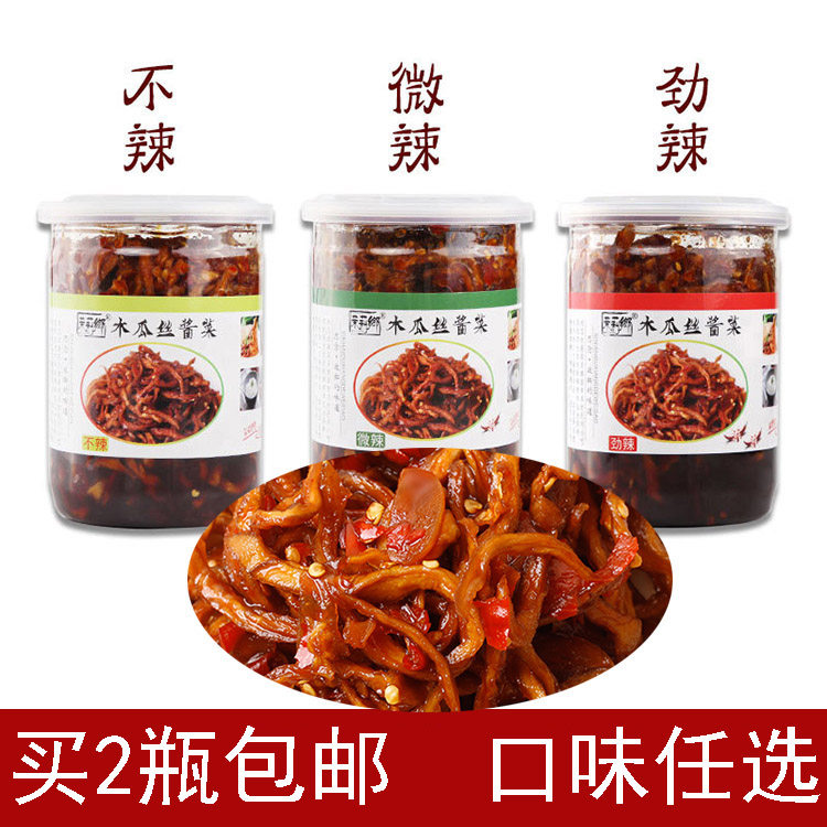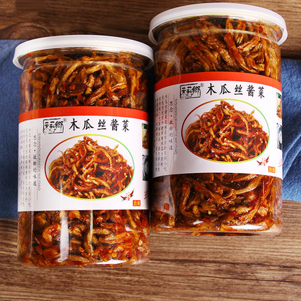 买2瓶起包邮 广西 横县木瓜丝酱菜500g香辣脆木瓜丝下饭3瓶45元