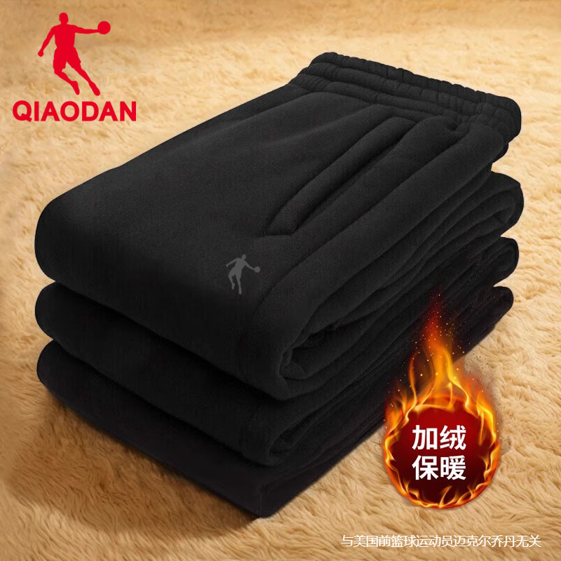 乔丹加绒运动裤男2025冬季新款保暖棉裤卫裤休闲束脚男裤正品长裤