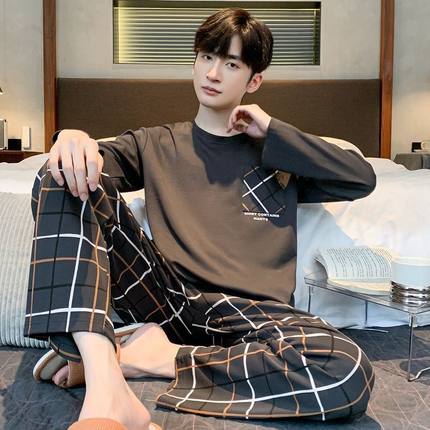 高档睡衣男款春秋季纯棉长袖青年休闲宽松外穿全棉大码家居服套装
