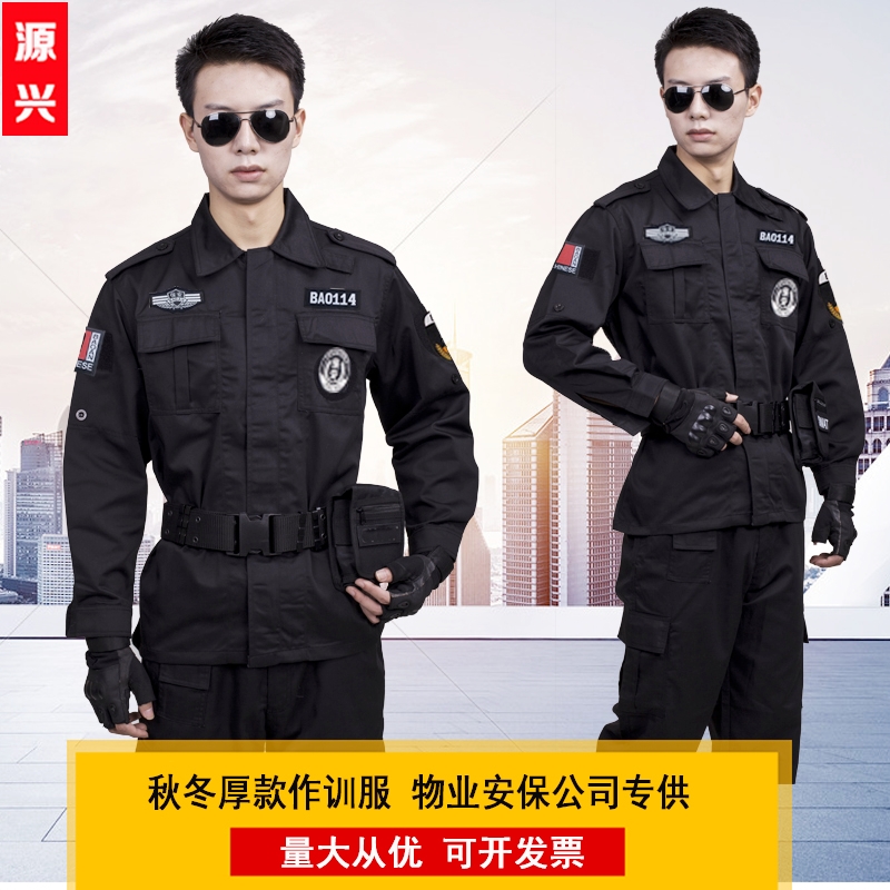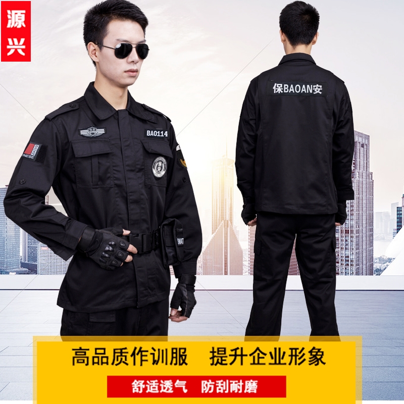 511保安作训服春秋长袖套装秋冬季黑色工作服安保制服男加厚冬装