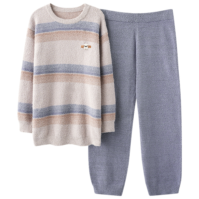 猫人半边绒睡衣男士冬季加厚秋冬款保暖男款珊瑚绒家居服2025新款