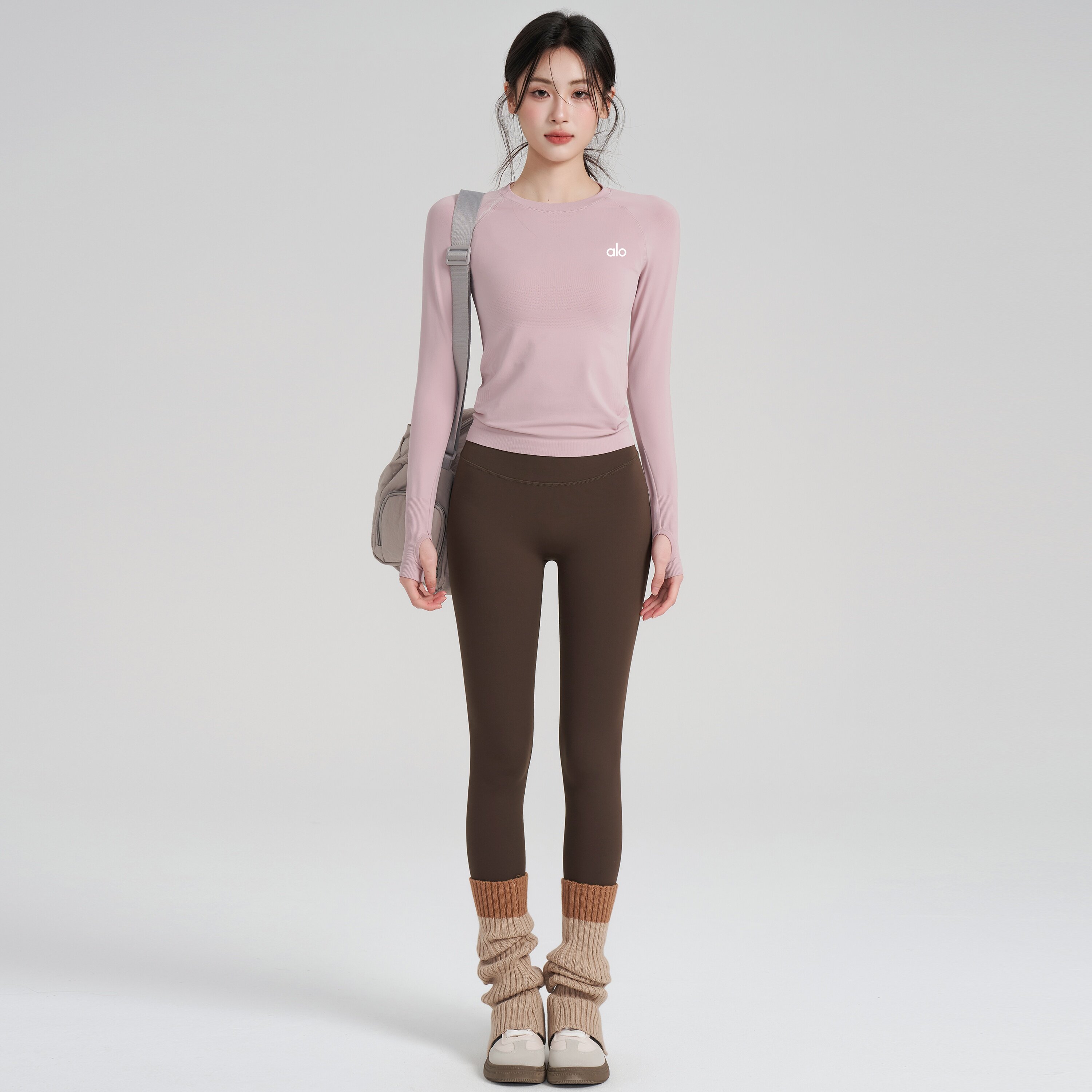 AIo秋冬款普拉提瑜伽服套装女圆领运动上衣跑步训练健身长袖t恤