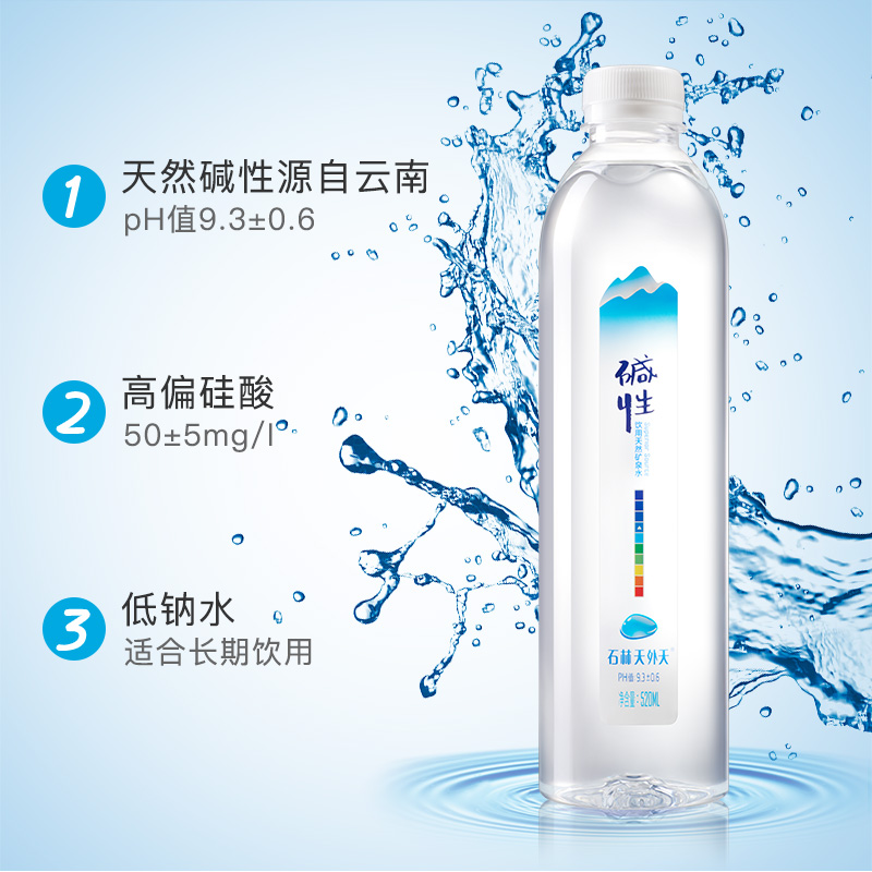 碱性水无糖520ml*4瓶礼品装天然矿泉水非苏打水饮料饮用水送礼
