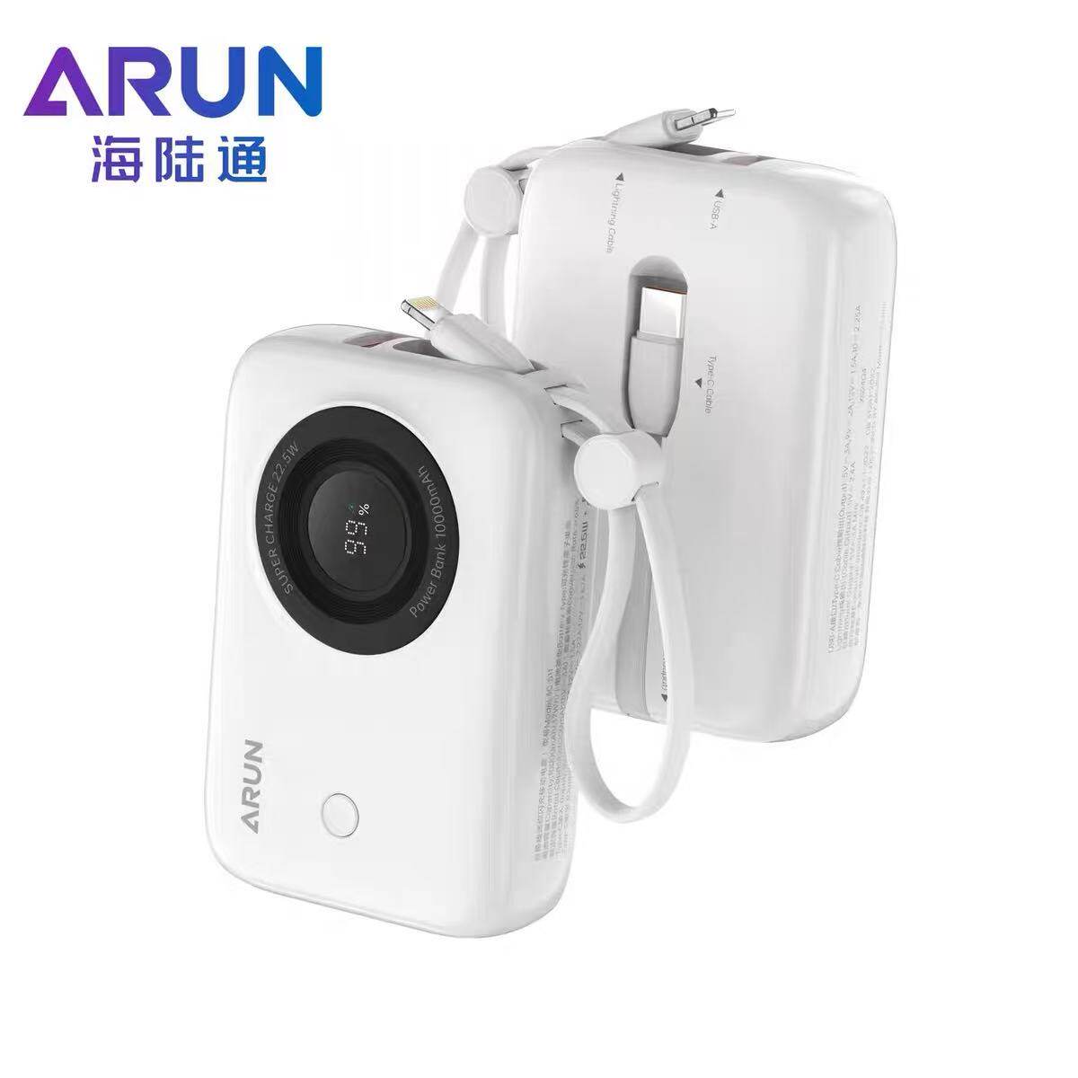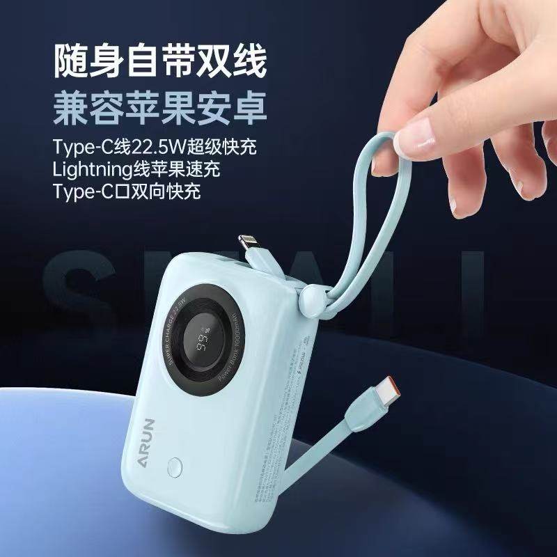 海陆通10000mAh可登机自带线PD22.5W快充3c移动电源手机充电宝