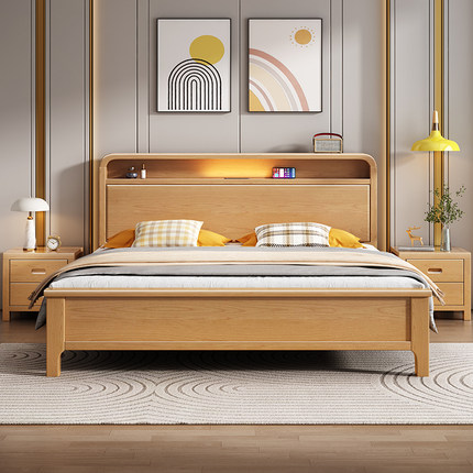 天坛家具榉木全实木床1.8米双人床现代简约1.2m1.35米单人床原木1