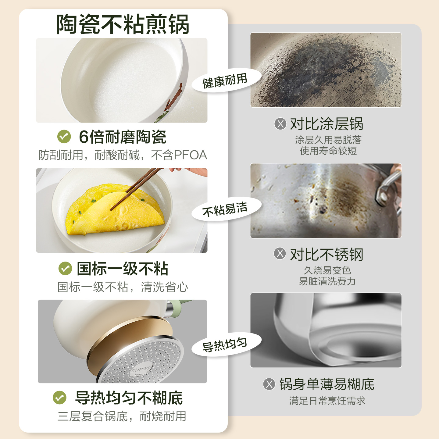 苏泊尔陶瓷奶锅宝宝辅食锅婴儿不粘锅家用电磁炉煤气灶通用