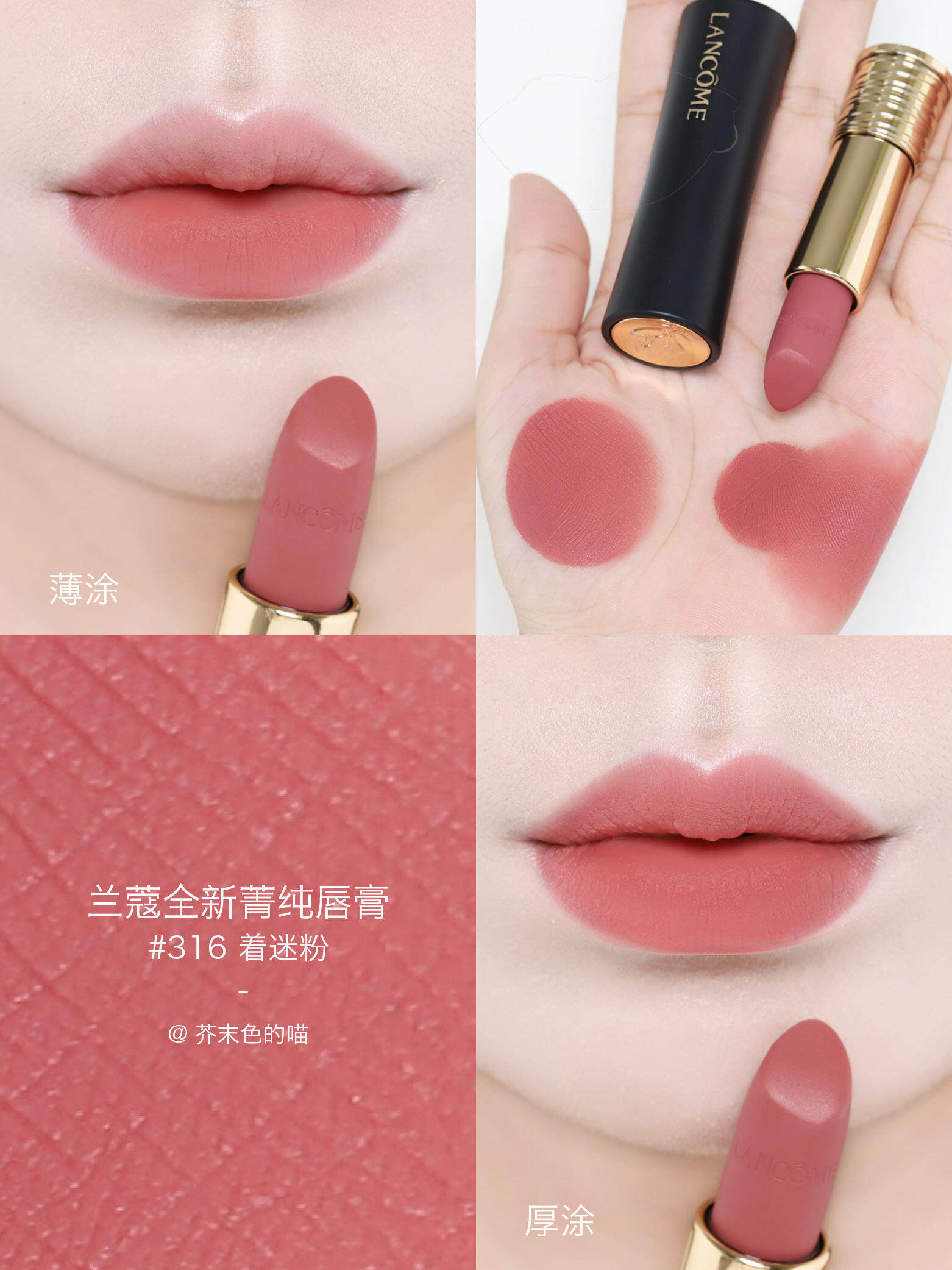 Lancome/兰蔻新品黑管小蛮腰哑光口红296 316 222 200礼盒装正品