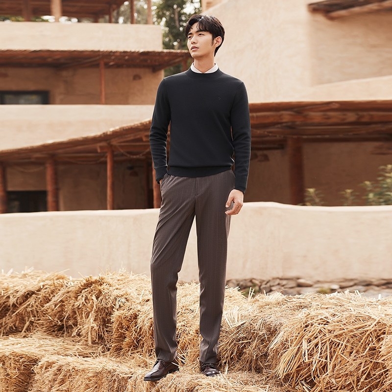 柒牌半高领毛衣男2024秋冬新款保暖舒适时尚休闲中青年打底羊毛衫