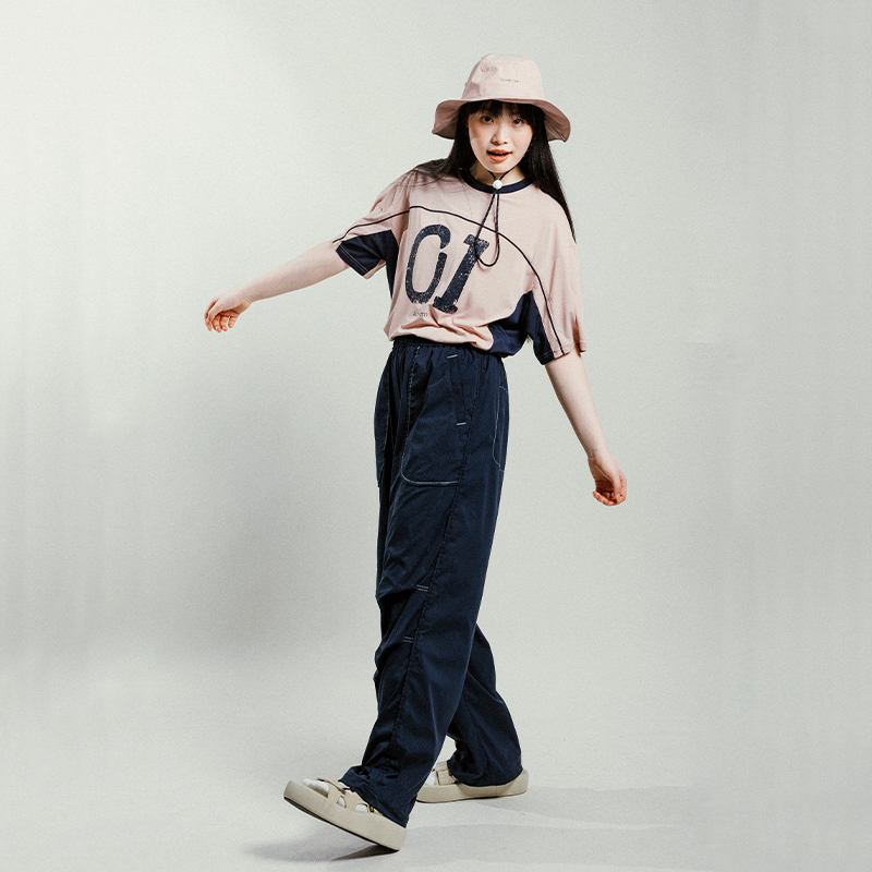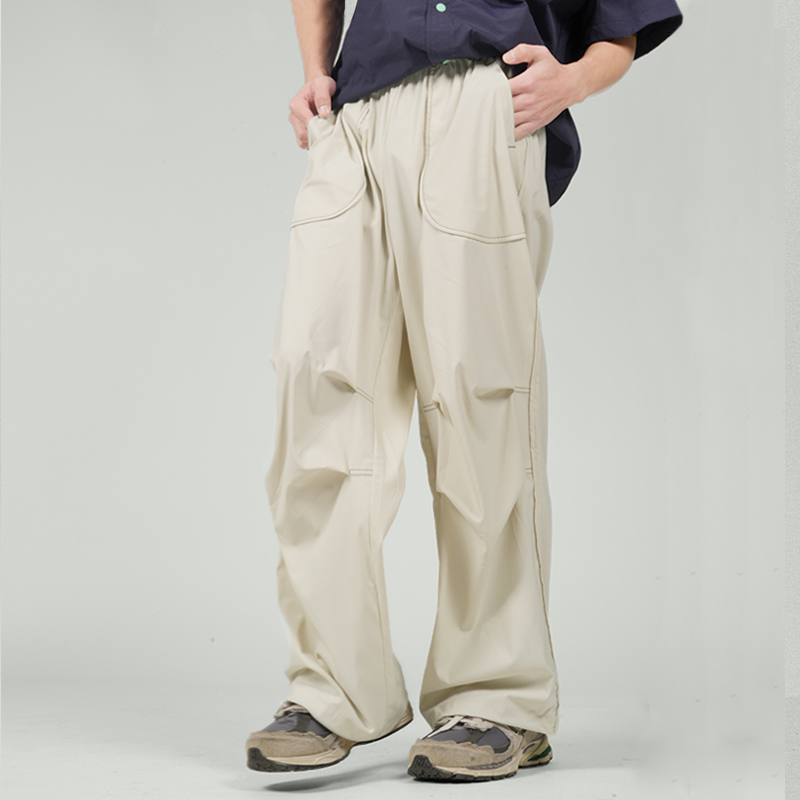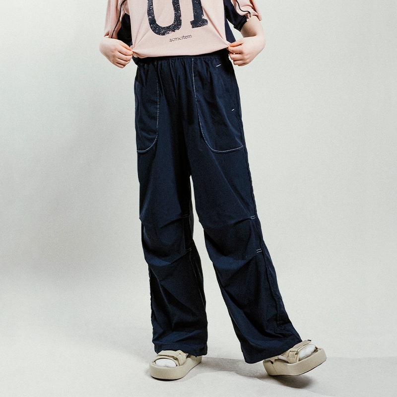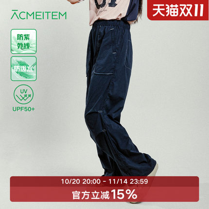 ACMEITEM爱棵米 户外防泼水竖纹休闲长裤可调节宽松裤子男女