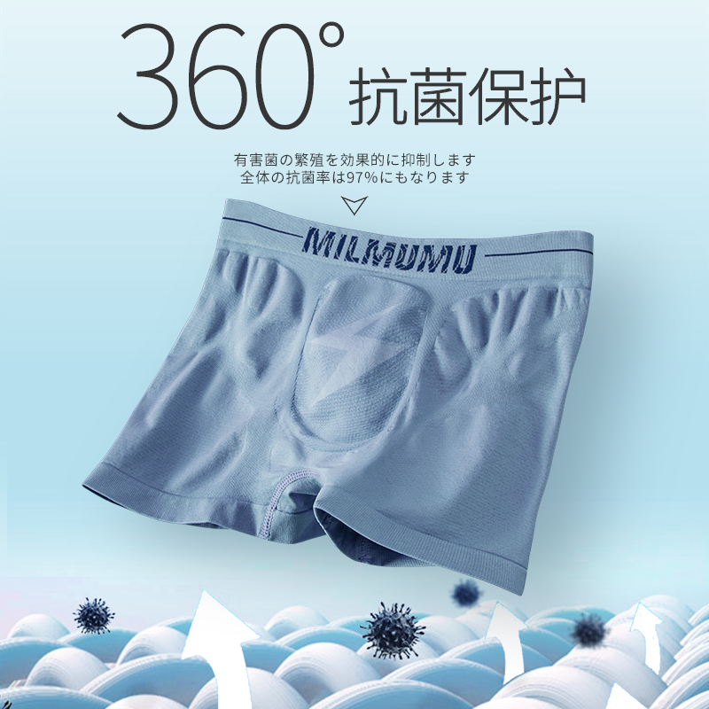 3条装闪电抗菌男内裤MILMUMU黑科技无缝一体织中腰超薄透气平角裤