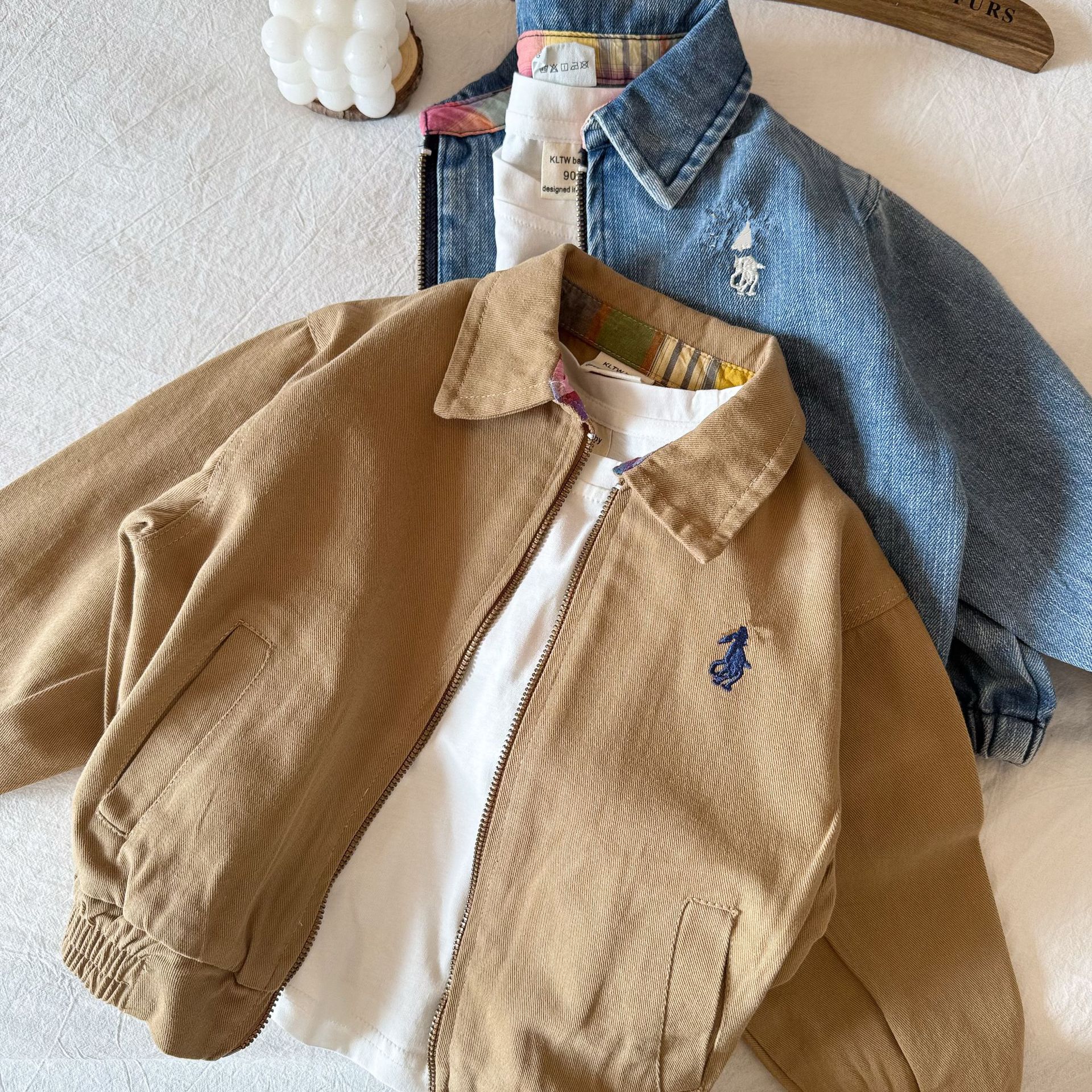 宝宝翻领牛仔外套2025春秋新款男女童复古做旧水洗拉链夹克外套潮