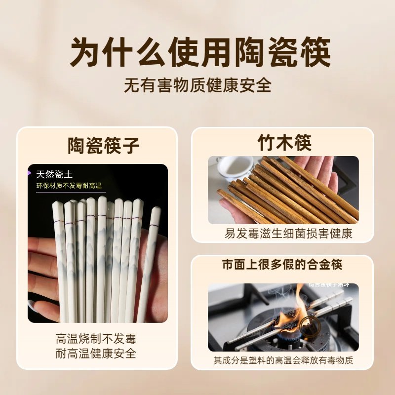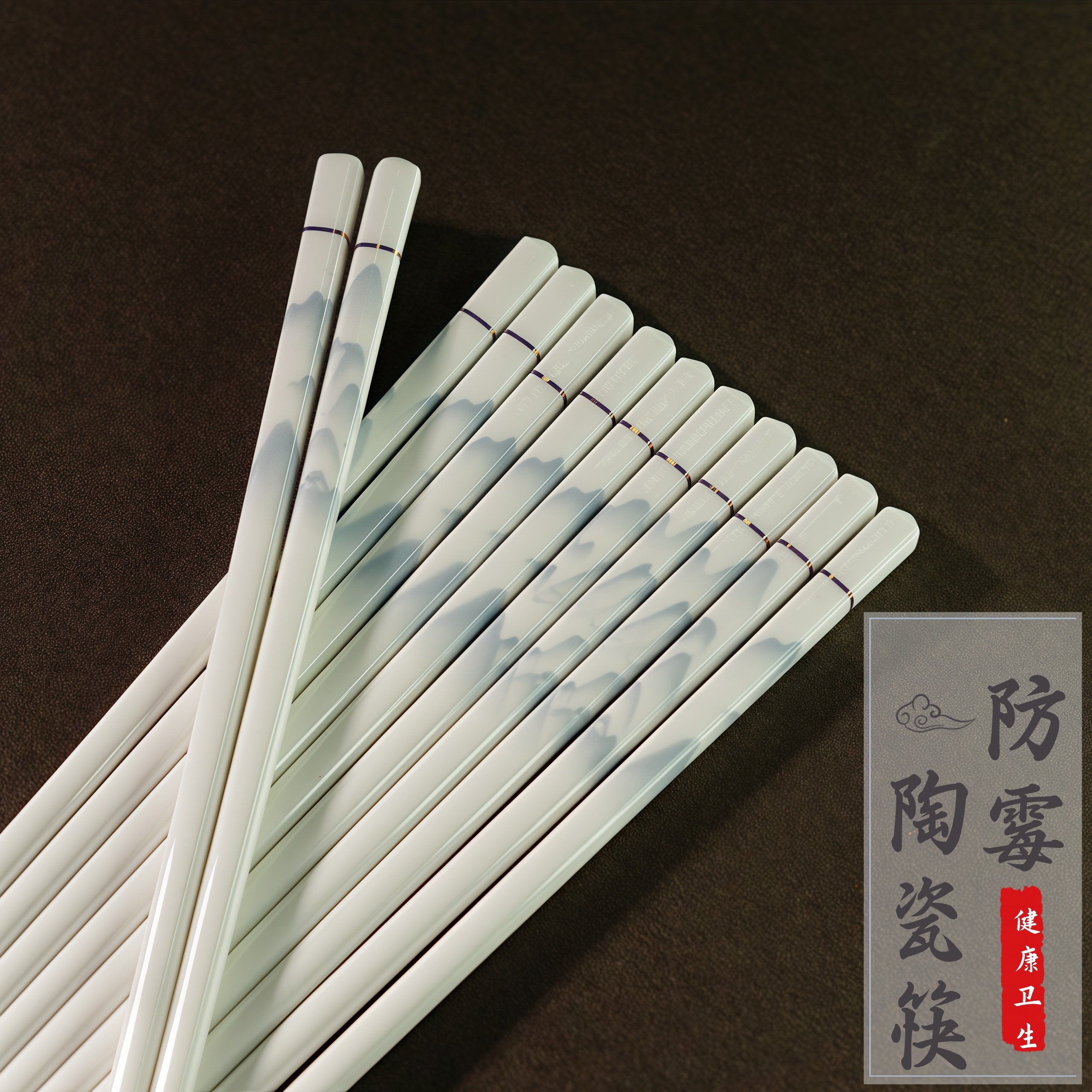 陶瓷筷子家用景德镇家用商用高档象牙白抗菌防霉耐高温易清洗