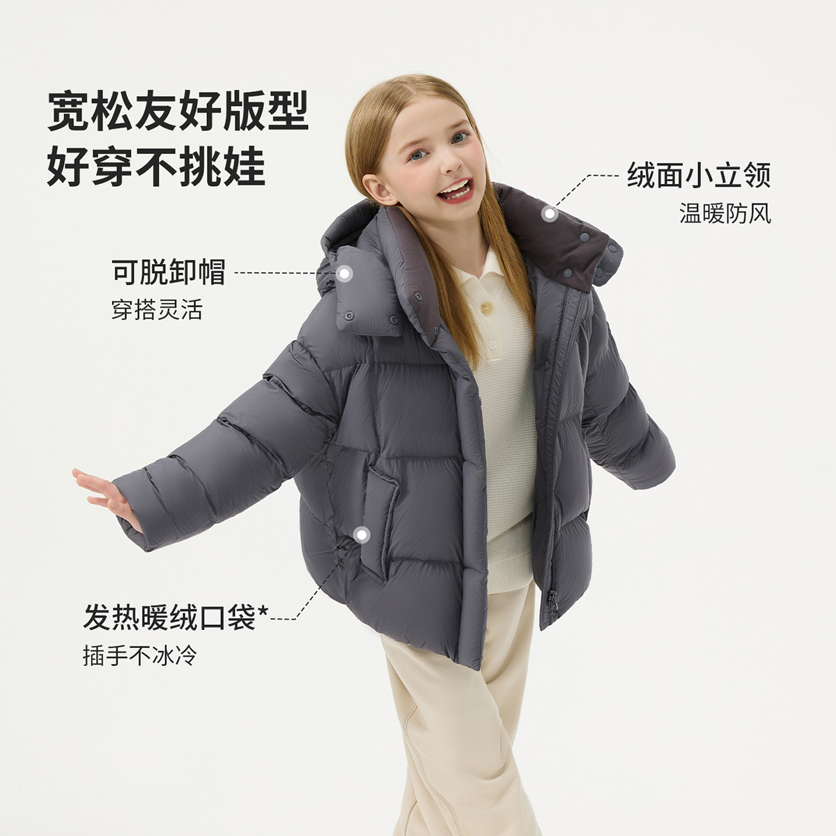 坦博尔25冬新款女童羽绒服短款加厚可脱卸帽外套泡芙面包服-ZB