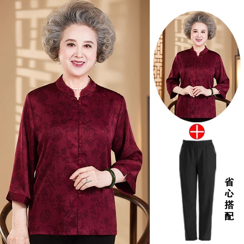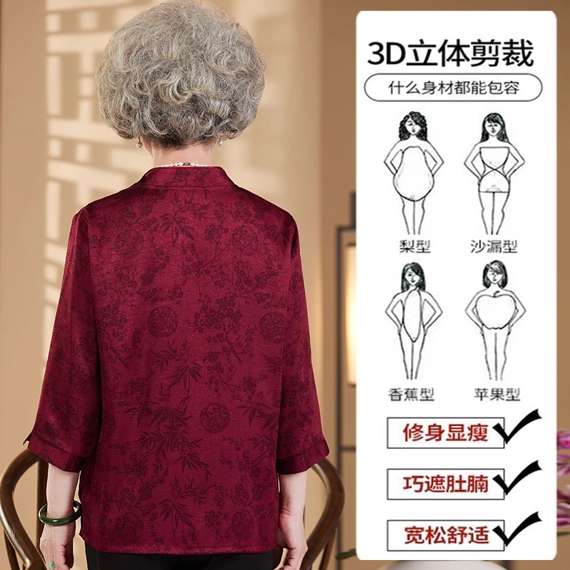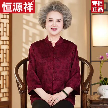 恒源祥奶奶夏装衬衫女老太太真丝婚宴衣服60岁70老年人妈妈寿宴装