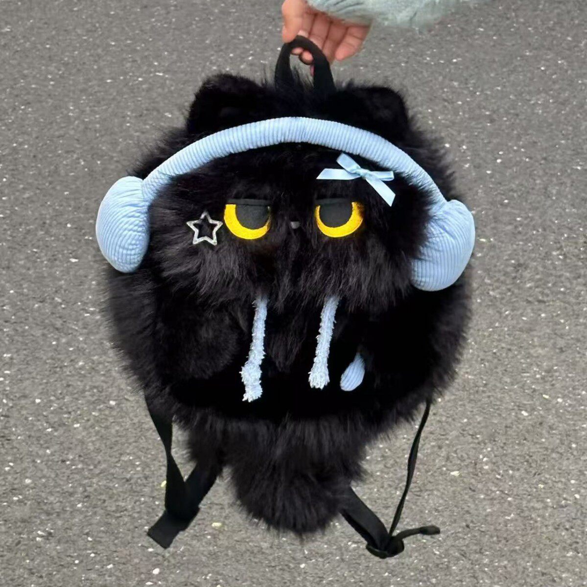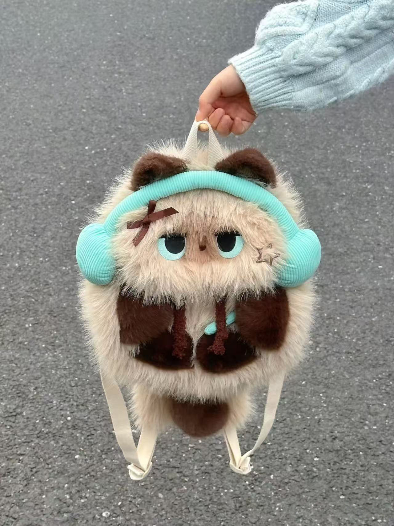 可爱毛绒暹罗猫咪双肩包韩版大容量抽绳闺蜜背包轻便菲佣小书包女